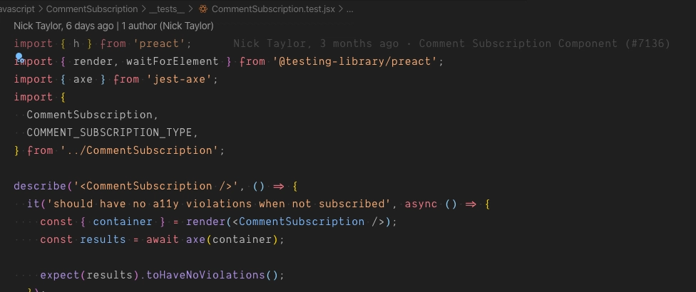 A big shoutout to my co-worker @ridhwana for helping me migrate all the tests to preact-testing-library. 👏 I’m really excited about all the changes we have been making on the frontend, and look forward to continue to improve it. If you feel like contributing to the project in regards to the frontend, don’t be shy to DM me on DEV, Twitter or wherever. I’m pretty much @nickytonline everywhere. If email is your jam, hit me up at nick@dev.to.
