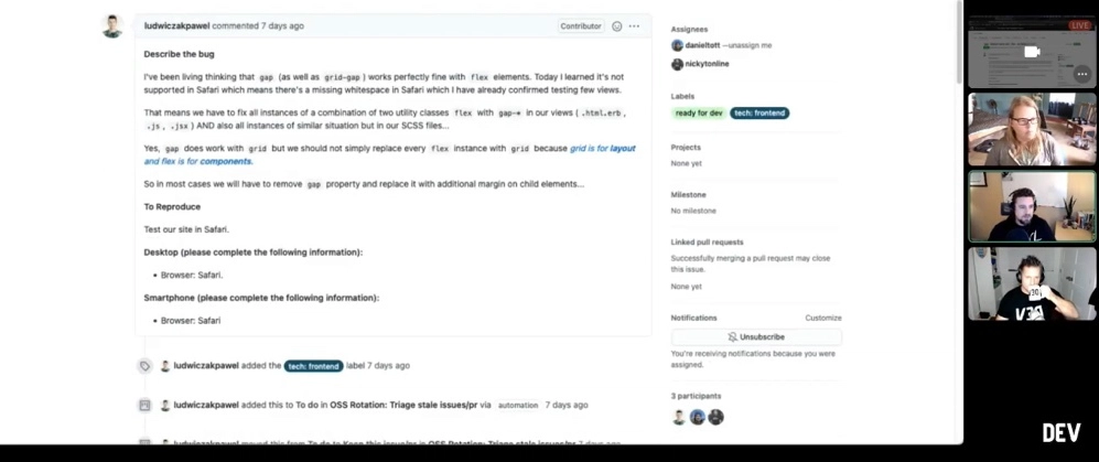 On , DEV Community member Dan Ott joined Christina and I on the pairing stream to work on a CSS issue related to Flexbox gap not being supported in Safari.