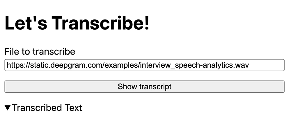We went through the demo code all the way to building out an app with Express that allows you to submit a URL for transcription.